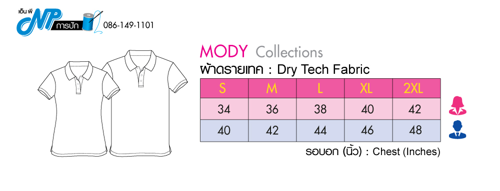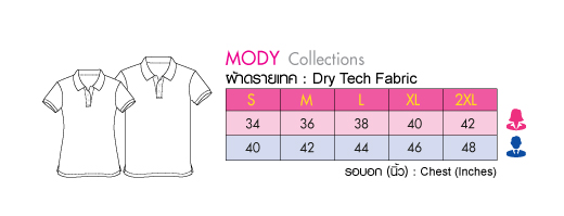 แห้งไว ด้วยเทคโนโลยี Dry Tech ซึมซับเหงื่อทันที ระบายอากาศได้ดีเยี่ยม เนื้อผ้าด้านในเป็น Micro Polyester ให้สัมผัสเรียบ ลื่น เบาสบาย เนื้อผ้าไม่ขึ้นขุย ดูแลรักษาง่าย รีดง่าย ยับยาก งานตัดเย็บละเอียด สวมใส่ได้หลายโอกาส ใส่ทำงาน ใส่ไปเที่ยว ใส่เป็นเสื้อคู่ ใส่เป็นเสื้อครอบครัว หรือจะทำเป็นเสื้อพนักงาน เสื้อรุ่น เสื้อทีม ฯลฯ